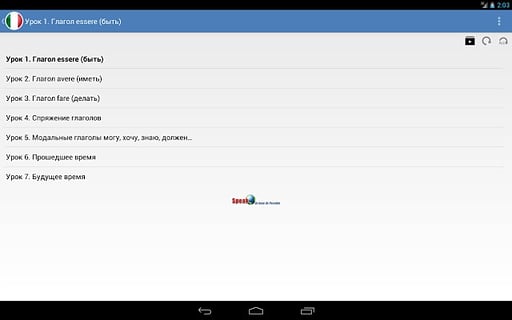 《Итальянский язык за 7 уроков》游戏 APP 是海沙工作室开发的安卓系统应用软件,版本号:3.2.5,由丢塔游戏网整理,欢迎下载体验。
