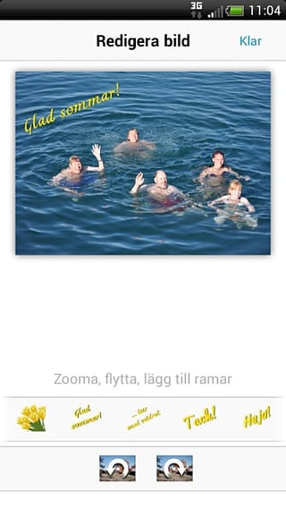• Välj en bild från ditt fotoalbum eller ta ett nytt foto med kameran, skriv en hälsning och lägg till adresser. \\r