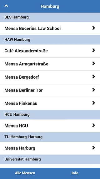 Die App umfasst über 550 Speisepläne von Mensen und Cafeterien in über 180 Städten. Auch die Mensa Deiner Hochschule oder Universität ist bestimmt schon mit dabei: \\r