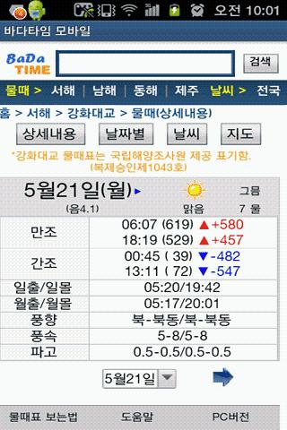2. 검색을 이용하여 서해, 남해, 동해, 제주 등 물때 상황을 지역순 혹은 가나다순으로 검색할 수 있습니다. \\r