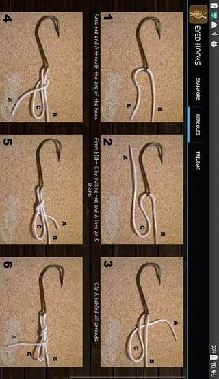 This application illustrates how to make the most popular fishing knots, categorized in 4 chapters: line, hook, misc and boating knots. Step-by-step instructions help anyone to master those. \\r