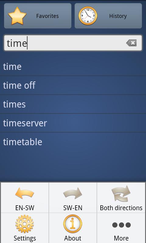这本英语斯瓦希里语词典是离线的,而且不需要网络连接。数据库的大小是超过 3 mb。它将会下载应用程序在运行时第一次。我们推荐你使用 wi - fi 连接。希望你会喜欢这款应用。