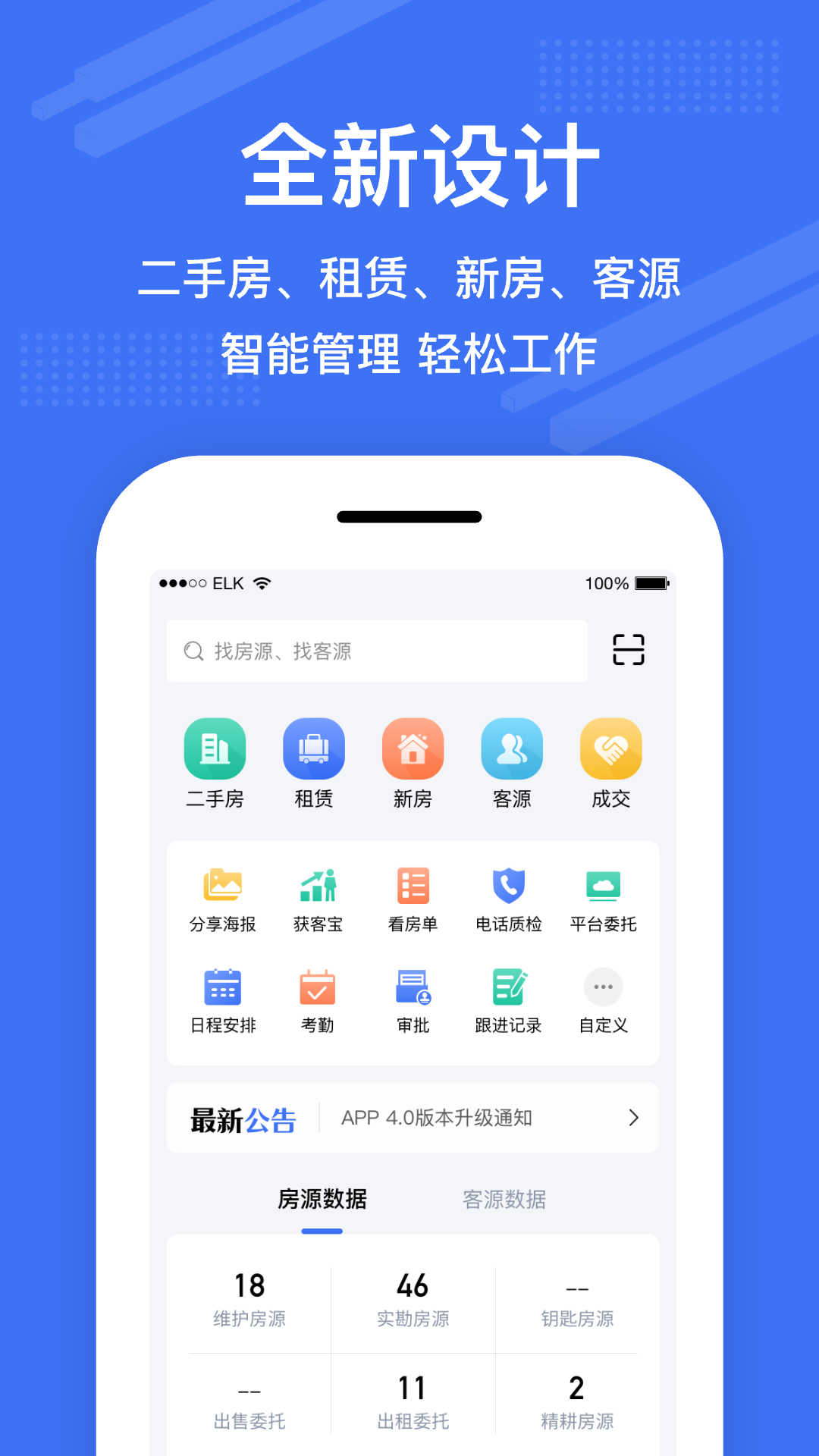 强管控、精细化管理,统一楼盘字典;商圈精耕、主营楼盘管理;房客维护标准化规则;规范合同实现电子签约;任务量化分解实时追踪;
