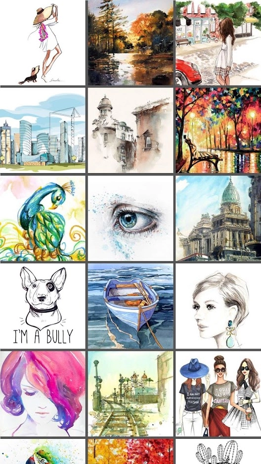 应用内提供多种画笔支持进行个人绘画创作:肖像画,素描,水彩画…等等。