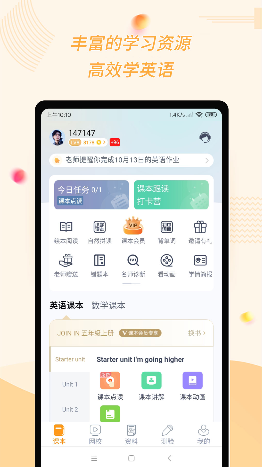 【课本听说读】:覆盖大部分课本教材,支持课本点读、连读、复读、跟读;还可放大课本句子,查看单词词典。让您轻松搞定小学英语;