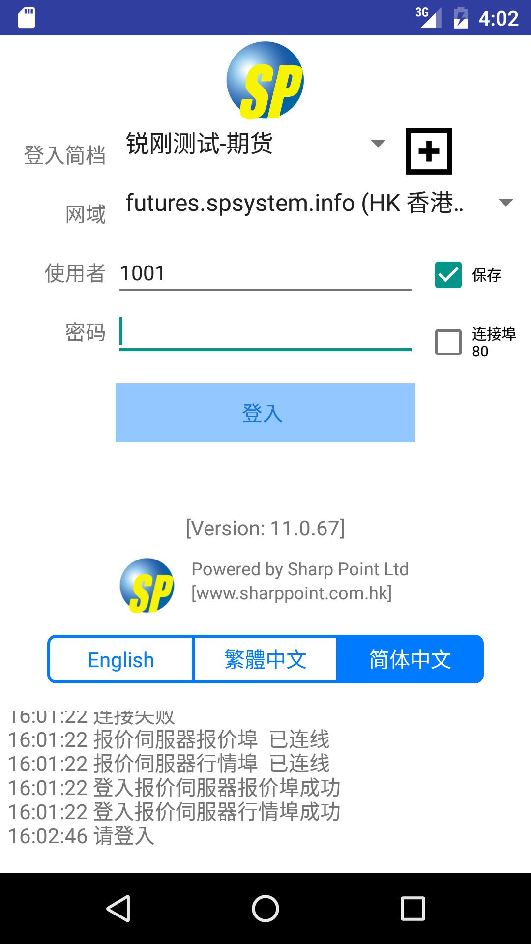 《SPTrader Pro HD》软件版本