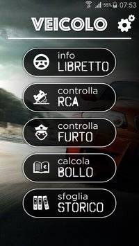 Cerchi un veicolo usato e vuoi conoscerne le caratteristiche?Vuoi controllare se l\'auto coinvolta in un sinistro è coperta da assicurazione RCA?Veicolo è il nuovo progetto di Talimac che ti permette di fare questo e molto altro!L\'app offre tante funzionalità:? ottieni decine di informazioni riguardo ad un veicolo, conoscendone semplicemente la targa, ad esempio: data di immatricolazione, marca, modello, cavalli, cilindrata, alimentazione, direttiva euro e tanti altri;? controlla lo stato di copertura assicurativa RCA di qualsiasi tipo di veicolo, semplicemente con un tap;? scopri se associate ad una targa risultano denunce di furto e, qualora risultassero, anche dove e quando;? utilizza le informazioni di libretto ottenute dalla targa e la geolocalizzazione del tuo smartphone per calcolare automaticamente il costo del bollo per il veicolo.Puoi usare queste funzionalità per vari tipi di veicolo: Autoveicolo, Motoveicolo, Autocarro, Ciclomotore. Hai ovviamente la possibilità di