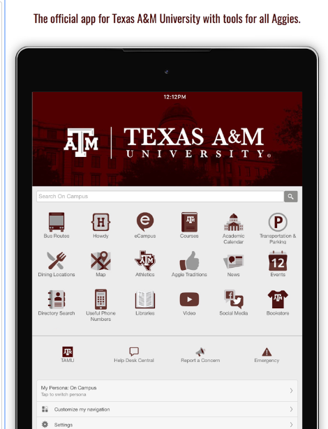 Texas A&M is working to provide a mobile experience for those on the go. In addition to providing access to information on and about Texas A&M, a number of campus offices, departments, and divisions offer mobile resources and services.
