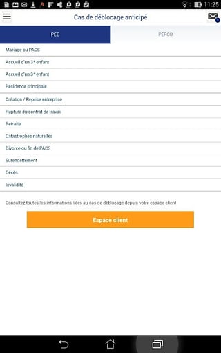 通过几次点击,您的情况 AXA 员工储蓄实施更新,并允许您详细查看您的 PEE 和 PERCO 设备的投资工具。查找直接在您的智能手机帐户中的所有信息:坐标如果使能信号,可用资产,财务信息。