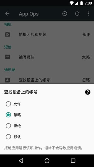 Q:(Android 6.0+)如果在 App Ops 中禁止,在系统的权限设置中允许会怎么样? \\r