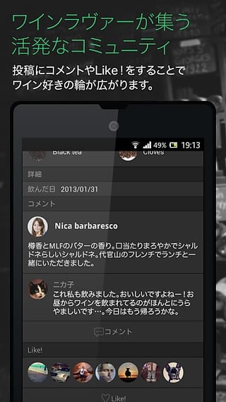 ・ワインの投稿がどんどんされますのでコメントやLikeボタンを使ってワインラヴァーのみなさんと交流しましょう \\r