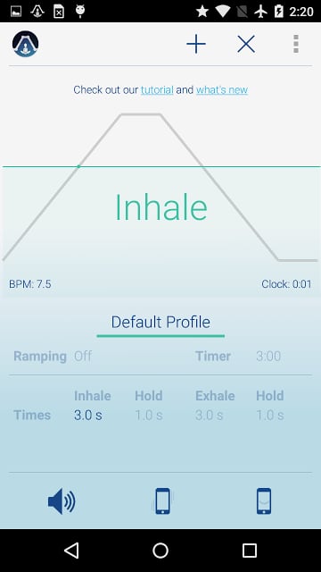 Paced Breathing helps you improve your breathing by giving you visual, audio, and haptic (vibrate) breathing cues.