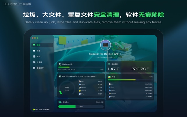 360 安全卫士极速版是一款免费的清理优化工具,提供硬件详细信息查询,清理与释放磁盘空间,一键卸载应用程序,以及系统大文件清理等功能,提高您的电脑使用效率。Clean up regularly to make your computer run more smoothly