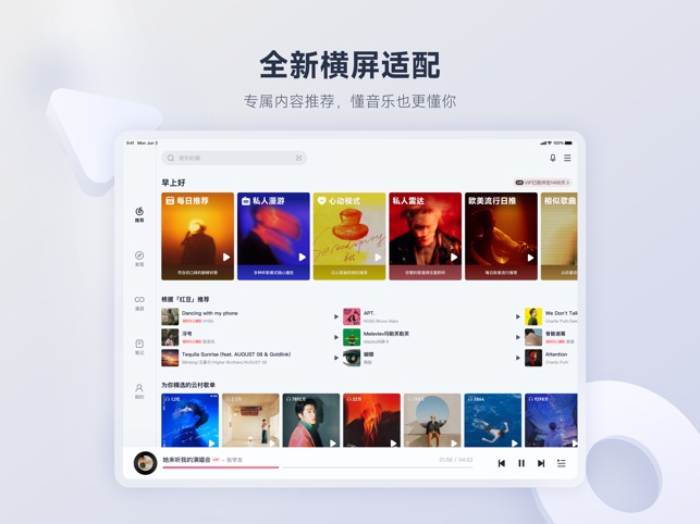 超准智能算法比你更懂你,根据你的日常听歌喜好,将自动推荐给你感兴趣的歌曲。