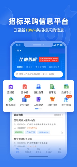 比地招标网旗下移动端应用-标讯快车——招投标信息服务平台,招标信息、在建项目、工程项目等招标采购信息,根据您的企业资质定制项目信息,降低选项目的时间提高工作效能,成为您招标采购的好帮手。