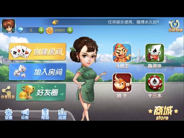 还有跑得快、斗地主等休闲游戏