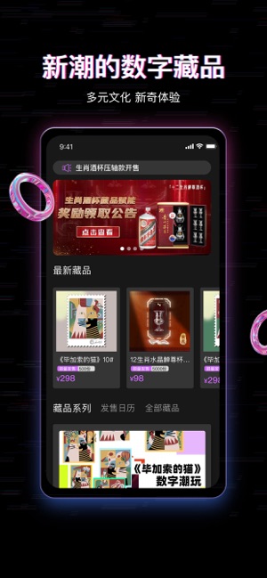 丸卡聚合开发大文娱 IP 资源,限量发行的正版授权数字藏品。让每个人都有机会拥有独一无二的数字文化衍生品,获得更多平台或品牌专属权益。