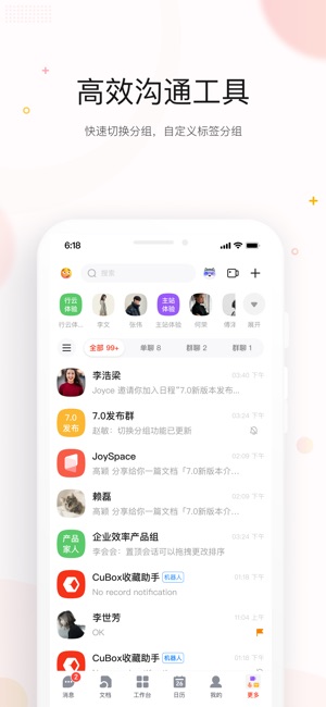 【多端互通】支持 iPhone、iPad 等多个平台互相沟通,打破端与端之间的壁垒,提供随时随地的信息同步和高效沟通。
