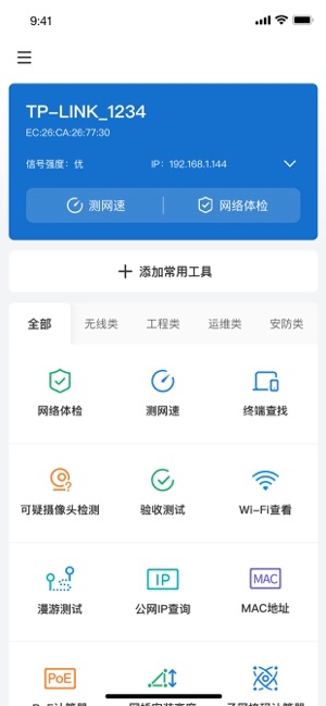 1、无线类小工具:网络体检、测网速、终端查找、摄像头检测、Wi-Fi 查看、漫游测试;
