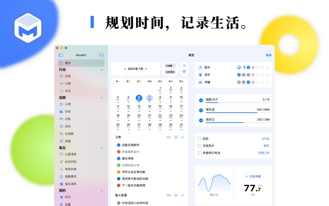 Mindkit 愿成为忙碌生活中润物细无声的好雨,让生活 / 学习 / 工作有条不紊,井然有序。保持良好情绪以及饮食习惯,高效完成工作 / 学习任务,愿我们都过好自己的每一天。