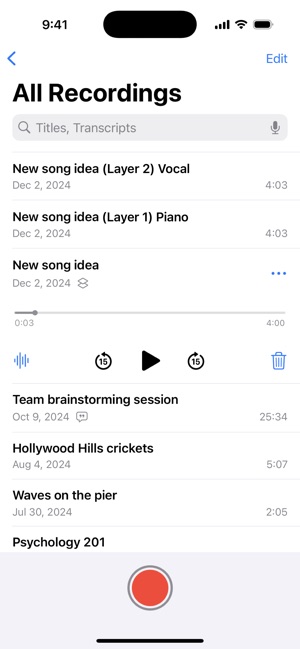 “语音备忘录”可将 iPhone、iPad 或 Apple Watch 变成便携式录音机,让你轻松录制与分享个人备忘录、歌曲灵感、家庭重要时刻以及授课内容等。修剪、替换等编辑工具,及全新“存储为”功能可让你微调录音,无需修改原始音频。听写文本功能可将语音转换成文字,让查找和参考特定内容更加简单。无需耳机即可在现有乐器录音中录制人声音层的新功能* 让你随时随地轻松捕捉歌曲灵感。用户即可分离并单独编辑人声和乐器音层,让灵感持续迸发。有了 iCloud 支持,你可以随时通过 iOS 设备录制音频,然后使用 Mac 进一步处理录音。