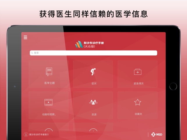 值得信赖的便携式默沙东诊疗手册(大众版)医疗信息应用程序提供: