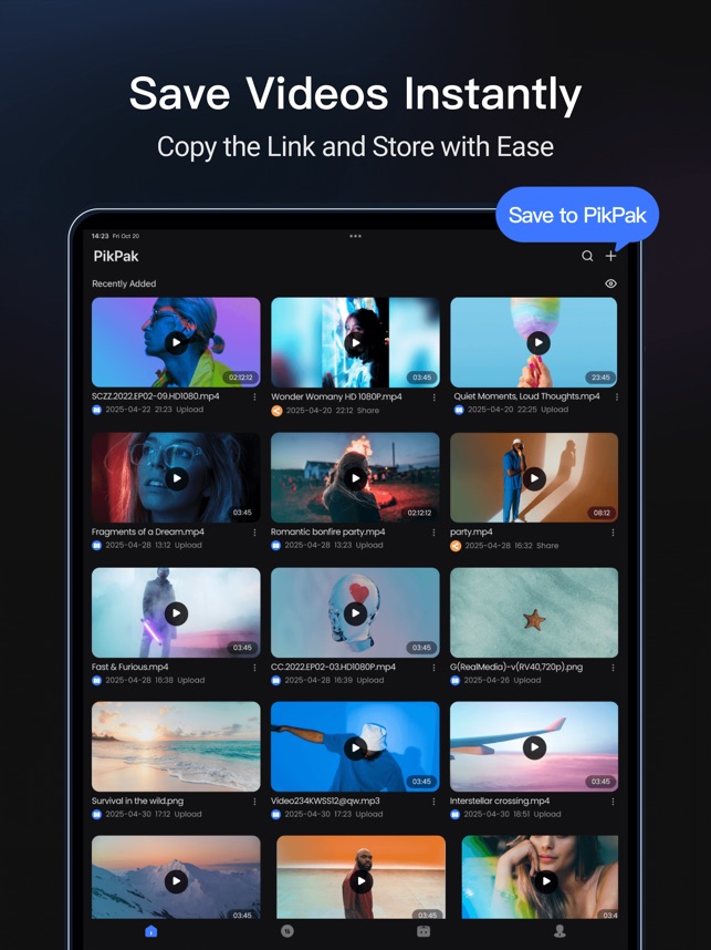 You can forward favorite files to PikPak via Telegram Bot, or save them through system sharing; Then find them in PikPak.
