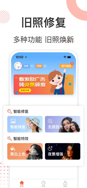 旧照修复-一键智能翻新修复老照片 – 黑白上色|漫画相机|图片分辨率|照片动起来|模糊修复