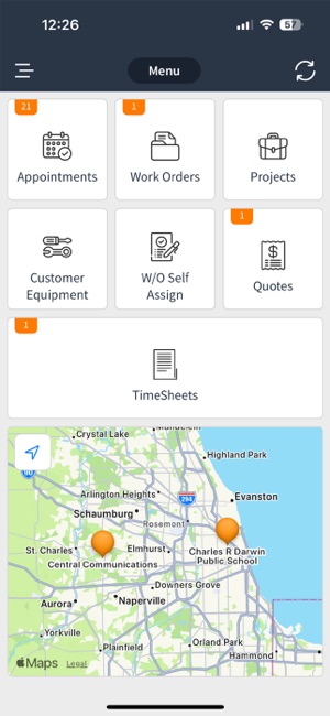 Quickly enter expense or map out your calls for the day and week. Plot your work orders and calendar for the best route. Push on the Pins to access appointment details.