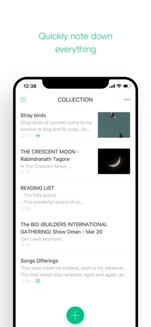 - Text, checklists, photos, images, voice memos are all available in GNotes.