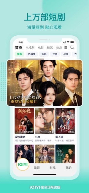 爱奇艺极速版-海量短剧、热门影视大片 – 《十八岁太奶奶驾到 2》和《暗潮缉凶》等热门影视大片应有尽有