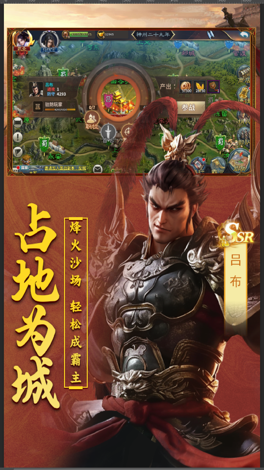 采用三国时期魏蜀吴国,三国争霸阵营对立布局:合理运用弓,骑,步,弩等多兵种配合,辅以丰富的武将和兵种相克战技;魏、蜀,攻城战、国战、世界大战等大型战争天天上演,战火无处不在!