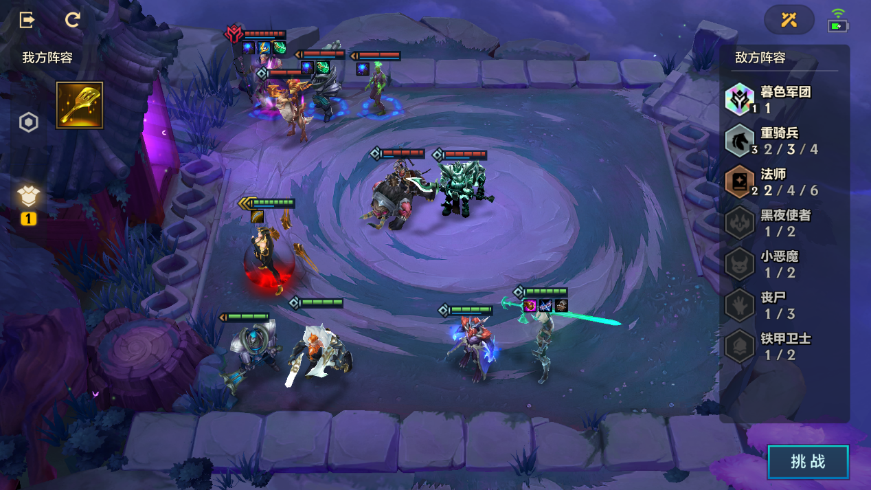 洛出装青龙刀、蓝霸服,吸血鬼出圣杯,艾翁第一排,吸血鬼、洛,索拉卡第二排。阵容主要依靠艾翁与召唤的小菊抗伤害,洛续航与高单伤,开局奶妈释放释放技能增加敌方前排 3 枚棋子法力值上线,之后艾翁召唤小菊群控敌方前排棋子,消灭敌方前排后就能围殴敌方卡尔玛了。 轻松拿下。
