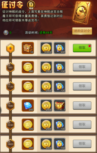 3:传奇招募,这个每个月会出一次,持续 15 天,必出超一流英雄,在开区的第三周开启,第一次会出剑圣的传奇招募,建议平民玩家氪 6 块钱就够了,大佬随意。每天完成任务获取各种奖励,完成 15 天任务,保底 42 积分。