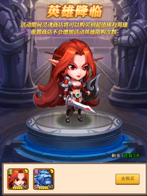 5:英雄降临,分解三星以上的英雄时会获得英雄魂石,限时会出英雄魂石换取强势稀有英雄的活动