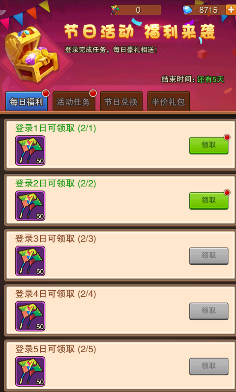 4:节日活动,一般出现在页面的右上角,每次活动持续一周,也是通过做任务来白嫖奖励就好了,做任务收集风车来换取召唤书召唤卷或四系精英英雄碎片