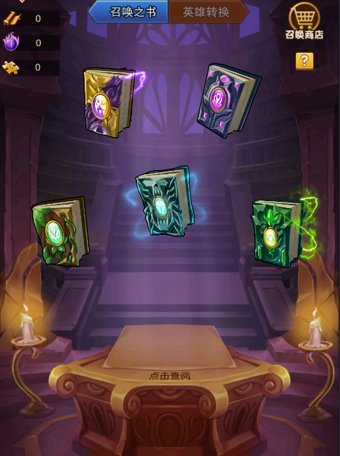 1:召唤之书可以通过召唤卷来抽取所有的英雄,每次抽英雄时会额外给你置换精华及召唤书碎片,召唤师碎片可以换取五星英雄,大部分英雄都可换取置换精华也有机会把狗粮变成稀有英雄,当你却狗粮时也可以把你四系狗粮在同系间转化来获取你想要的英雄