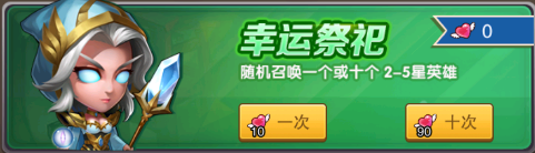 2:幸运祭祀,随机召唤 2-5 星英雄,消耗的是友情点,每天加满好用可以获取 50 个友情点,每天白嫖 5 次,也可以等 90 个友情点进行十连抽,这个获取到五星英雄的概率比召唤祭祀的概率高一些。