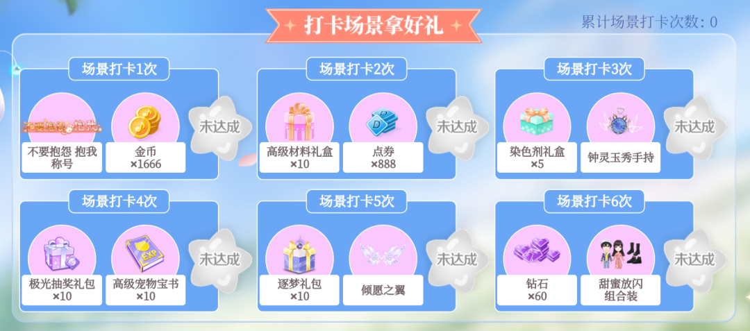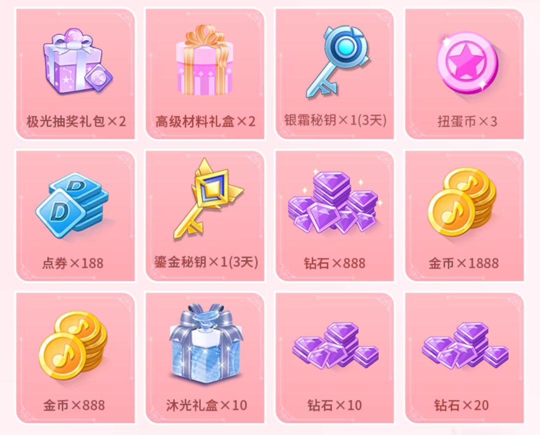 甜蜜打卡,钻石美衣、称号道具轻松领~