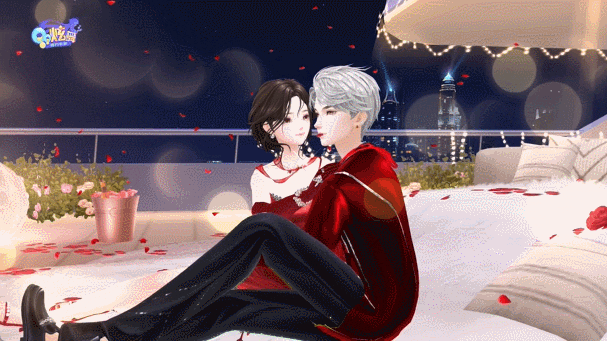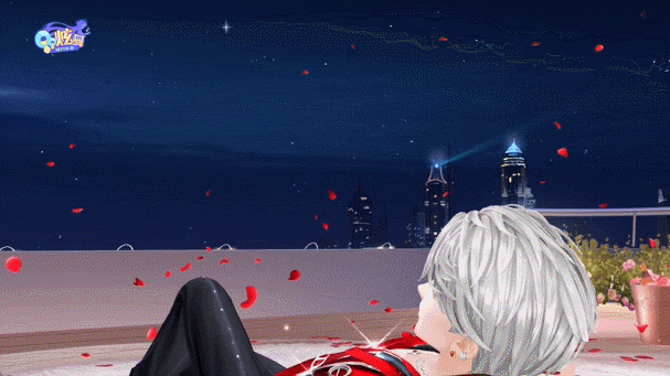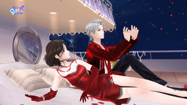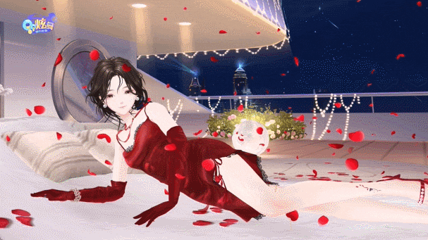 新婚伴侣躺在游轮上赏月,男生打了个响指,玫瑰花瓣纷纷散落。