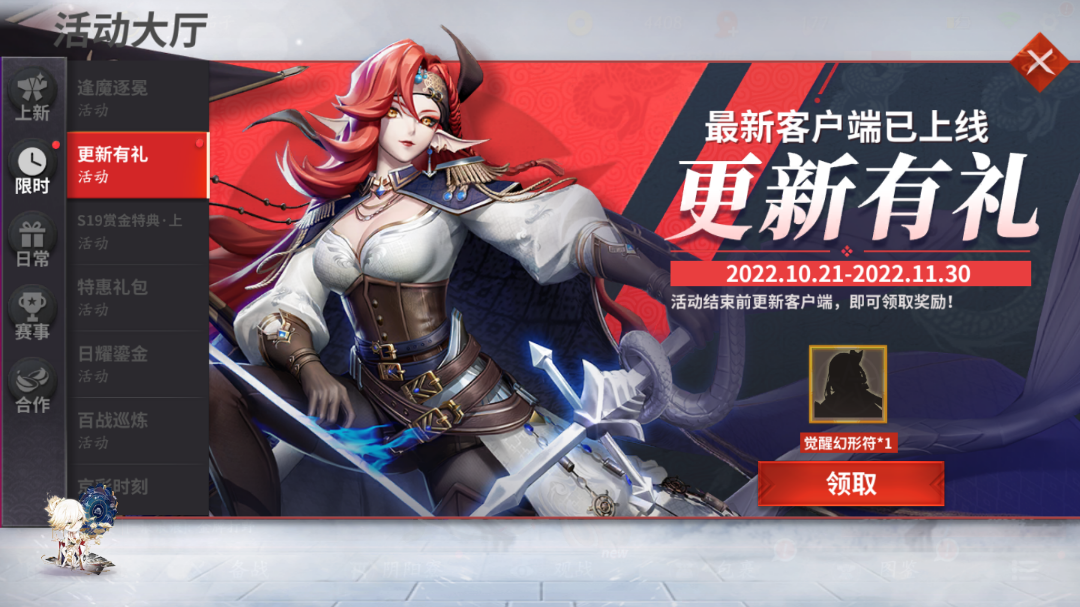本次更新优化了性能表现,提升了游戏流畅度,下载最新客户端版本,更新后即可领取珍贵奖励[觉醒幻形符]!
