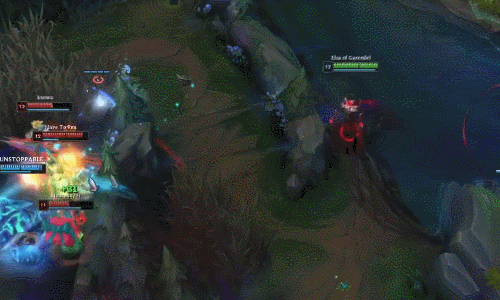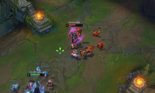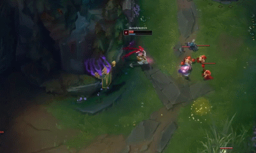 E:丽桑卓的位移技能,迷惑性很强,可以学会卡墙边给 E 利用二段进场打控制;