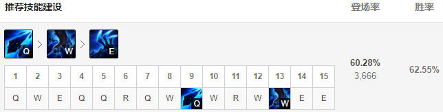 Q:丽桑卓的核心输出、Poke 技能,对线的时候要学会利用兵线接 Q 消耗对手血量;
