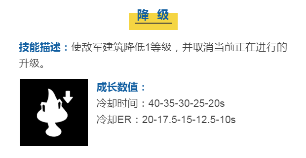 适合与玩家周璇,牵制玩家的发育速度,使对手不得不牺牲大量兵力重新升级建筑物,在前期拉出巨大的差距。需要注意对手的动向,每次技能的使用都非常宝贵,作用于 3 级提升 4 级的建筑最为划算哦~