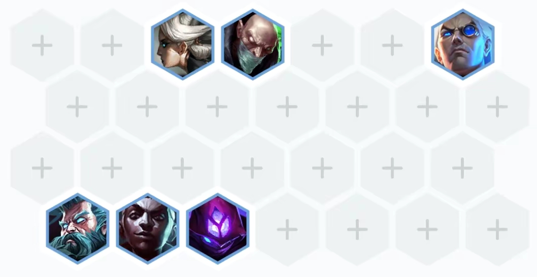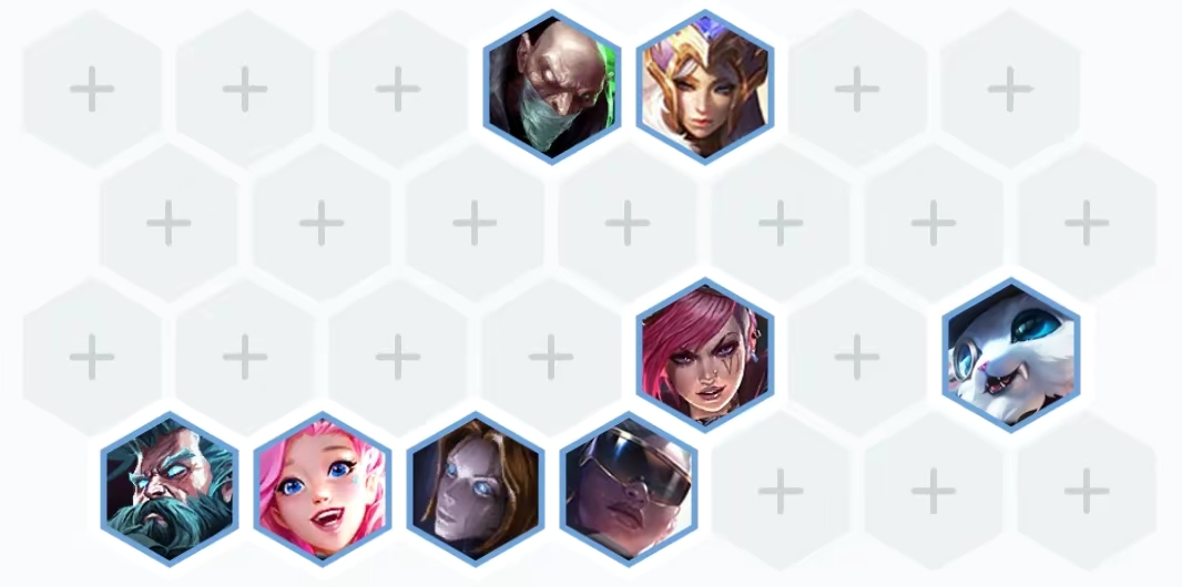这套是娱乐阵容,大师局在 4 阶段,如果抽不出两星“蔚”,很难锁血。