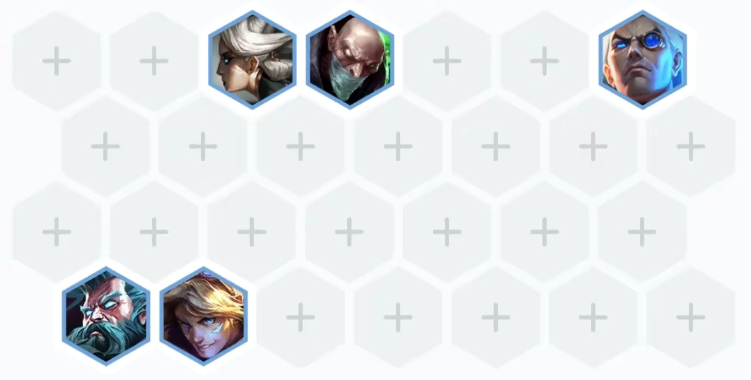 在找到两星“蔚”之前,“辛吉德”和“瑟庄妮”的质量非常重要,因为阵容的前排比较少,而且“蔚”需要叠满【泰坦】。前面看到这两张牌一定要留。