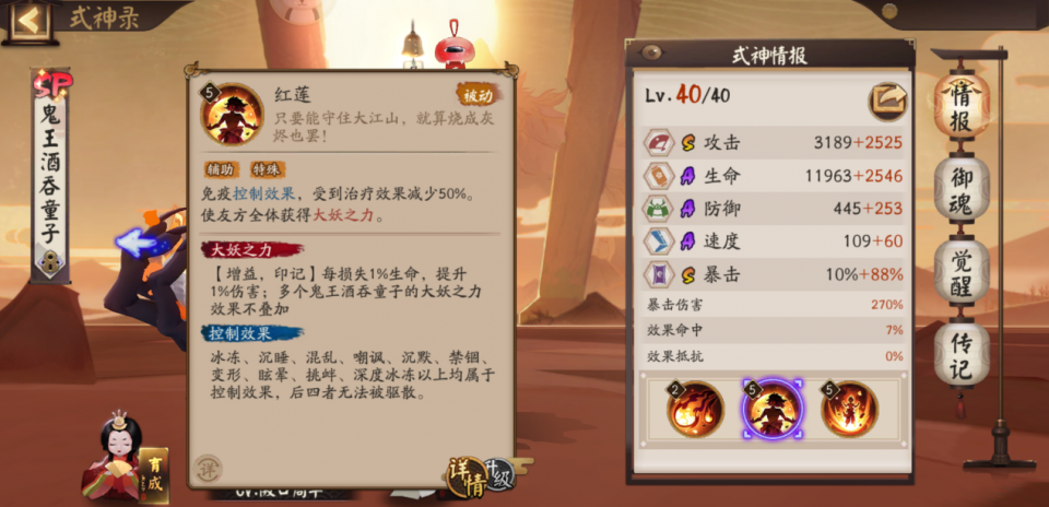 而,一旦天井下有了欢愉标记,那更加快乐,好家伙直接免疫控制。意思是,有欢愉标记的天井下,没有人能控得住她。大岳丸以及麓鸣大岳丸这种控制都没有办法,这效果和鬼王酒吞童子一模一样,简直就是鬼王牌的打火机。而天井下自身还有带动队友拉条的效果,之前就有天井下融入“永动机队”,天井下斗技场还是有一定的选取率,她的这波加强,对她还是有一定好处的。天井下的技能分析完毕,这波加强看似很强,免疫控制,但是只针对她自己,且不是永久性的免疫控制,欢愉标记消失之后能否抵抗得住对面还是得看脸。