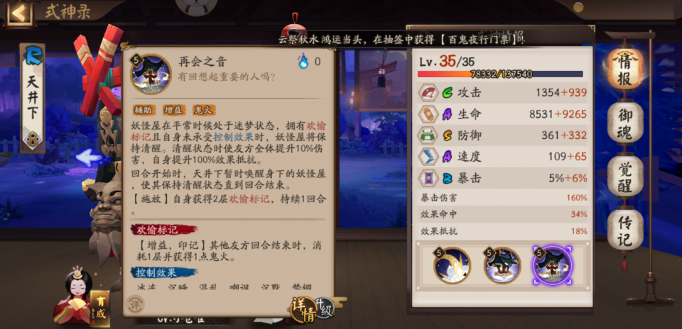 阴阳师:天井下喜获加强,欢愉标记免疫控制,鬼王牌的打火机?