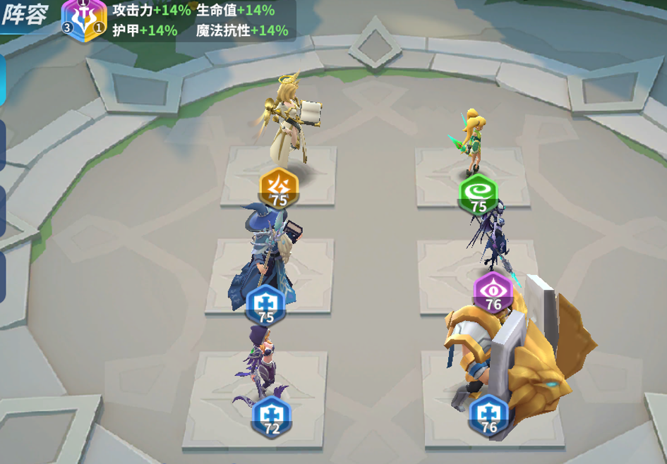 后排:泰古之王、元龙骑士、元素行者。六纷争 20%羁绊效果。
