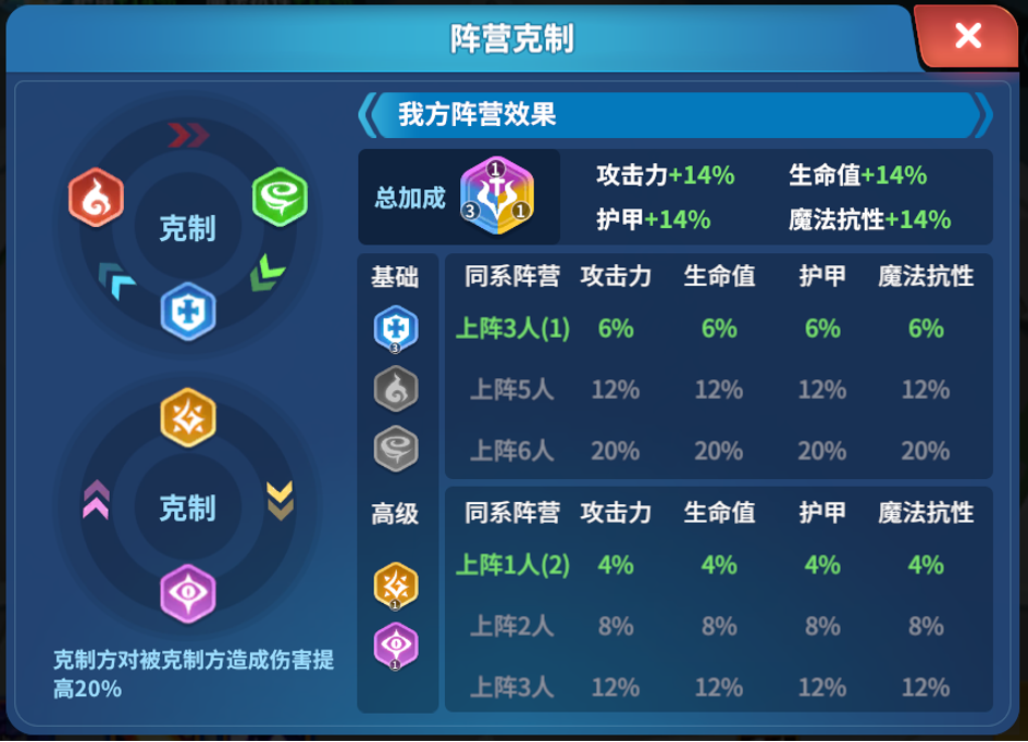 其次阵营之间是有相互克制的一个关系:秩序克制纷争、纷争克制自然、自然又克制秩序。光暗之间是相互克制的。